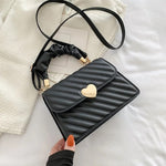 Are you searching for a standout accessory that seamlessly combines elegance and functionality? Look no further! This monochrome shoulder bag with a chic check pattern is a timeless piece that complements any ensemble. The heart-shaped metal embellishment and flap closure add a touch of romance and charm, making it a must-have for the fashion-conscious.