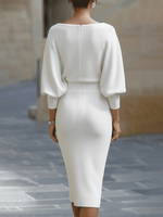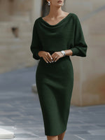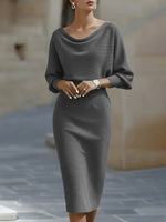 Minimalist elegance meets sculptural grace in the Ailany™ | Luxurious Midi Dress, a refined statement piece crafted to embody quiet luxury. Featuring a fluid cowl neckline that frames the collarbone with soft romantic appeal, this design pairs a relaxed, draped upper silhouette with a contoured pencil skirt that sculpts the waistline. The result is a beautifully balanced, feminine shape that moves effortlessly from daytime sophistication to evening refinement.